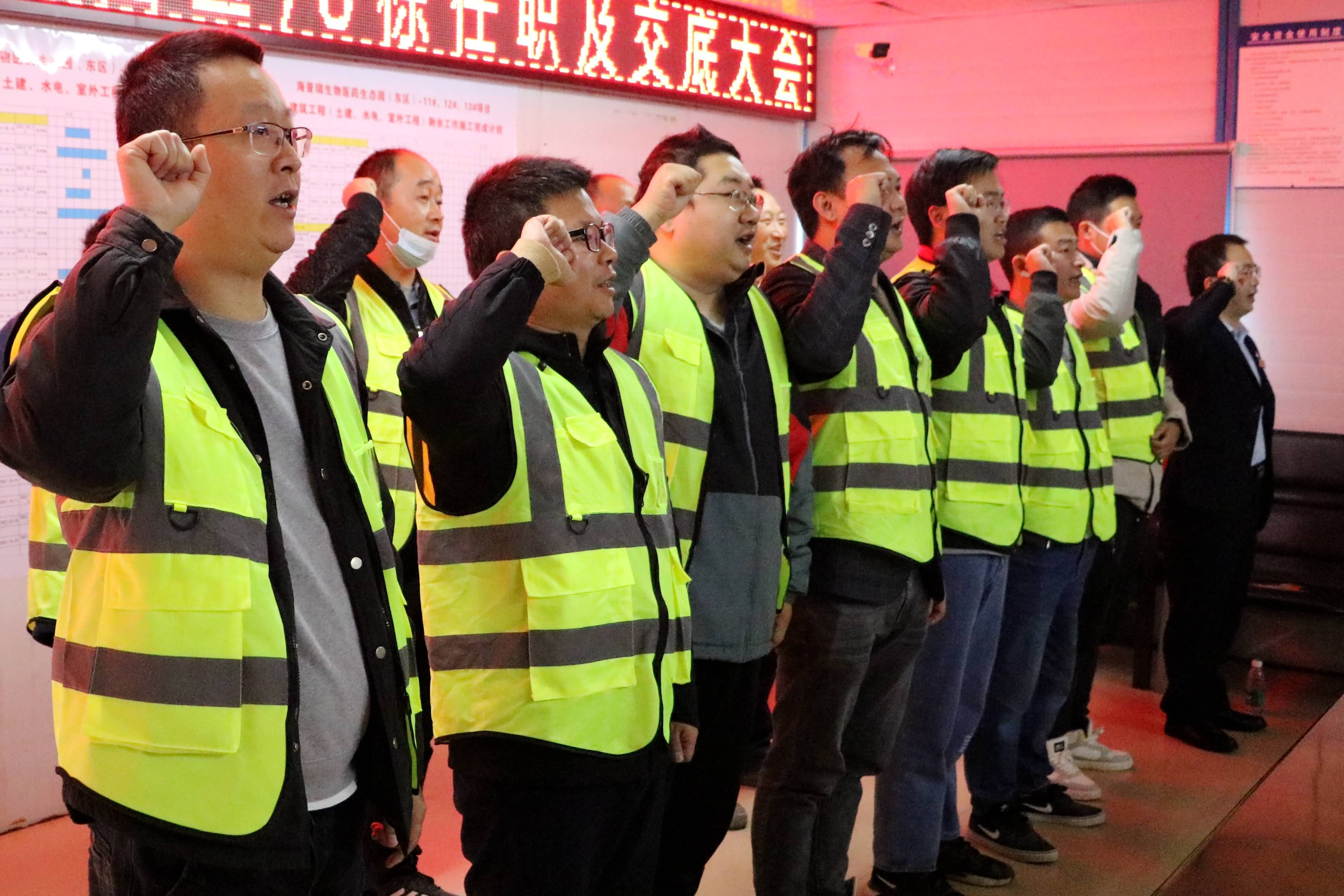 随后举行了宣誓仪式,所有新任职的管理人员高举右拳,庄严宣誓:尽忠职守,爱岗敬业,遵守公司与项目部各项规章制度,廉洁奉公,为公司和项目服务,对公司和项目负责,对自己的工作负责。宣誓铿锵有力,承诺掷地有声,展现了各位项目管理人员履职尽责、争创佳绩的信心和决心。