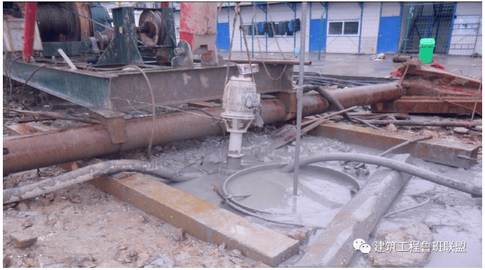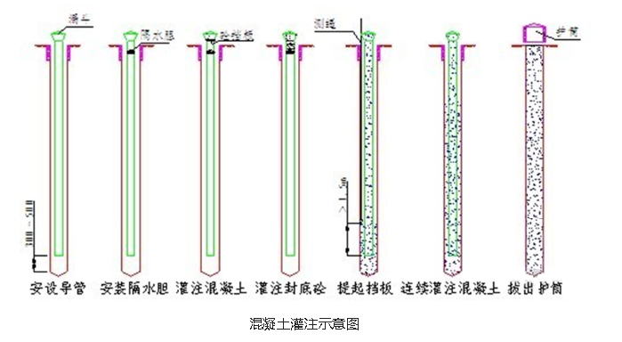 (2)若是第二、三种原因引起的,应视具体情况,若用原导管插入续灌,但灌入前均要将导管内的水和沉淀土用吸泥和抽水的方法吸出;若重新下导管,必须用潜水泵将管内的水抽干,才可以继续灌注混凝土。