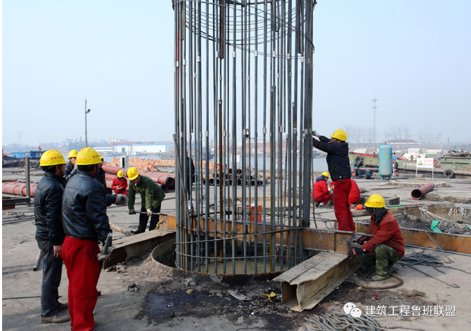 (1)将钢筋笼固定绑扎或点焊在护筒上;