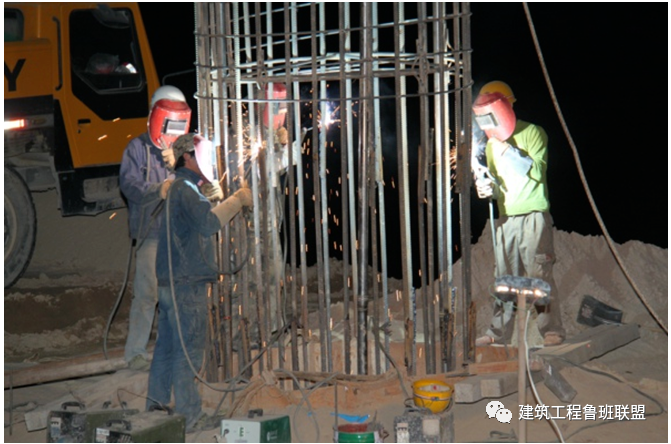 5、钢筋笼在入孔后,与上部钢筋连接采用单面焊接,焊接好以后,禁止马上放入孔中,要等钢筋冷却1分钟后在放入孔中。