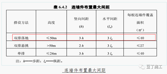 (3)应优先采用菱形布置,或采用方形、矩形布置。开口型脚手架的两端必须设置连墙件,连墙件的垂直间距不应大于建筑物的层高,并不应大于4m。