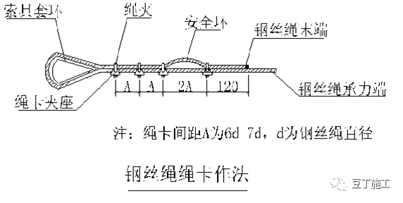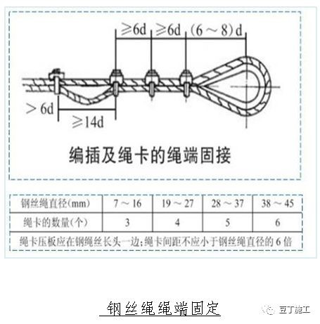 6.悬挑式操作平台安装时,钢丝绳应采用专用的钢丝绳夹连接,钢丝绳夹数量应与钢丝绳直径相匹配,且不得少于4个。建筑物锐角、利口周围系钢丝绳出应加衬软垫物。