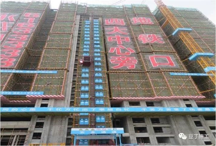 脚手架外立面清爽、美观,广告及安全标语设置规范。