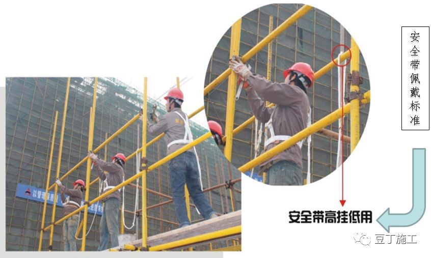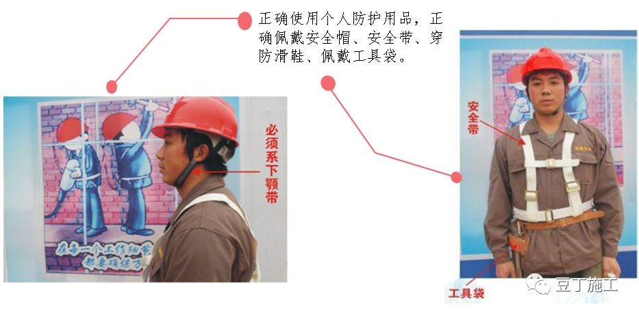 2.搭拆脚手架人员必须戴安全帽、系安全带、穿防滑鞋。