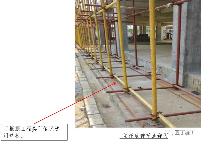 ①立杆基础应按方案要求平整、夯实,并采取排水设施。