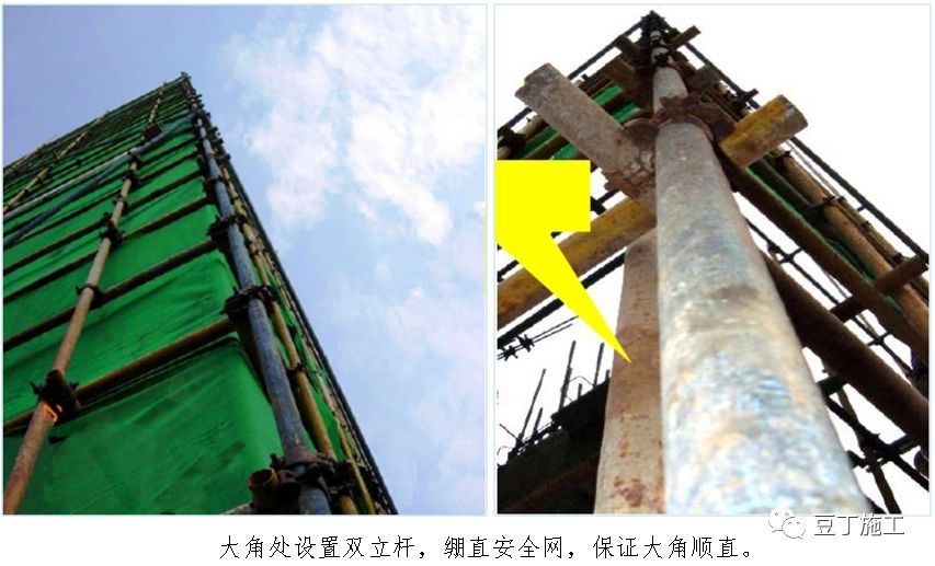 4.架体阴阳转角处应设置四根立杆,大横杆应连通封闭。