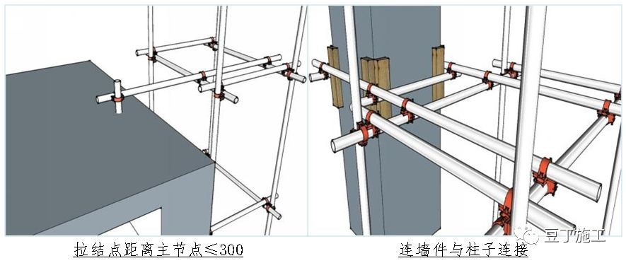 (1)主节点处必须设置一根横向水平杆,用直角扣件扣接且严禁拆除。