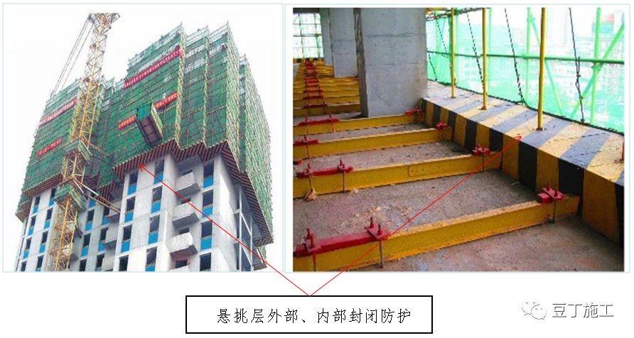 4.悬挑式操作平台的外侧应略高于内侧;外侧应安装防护栏杆并应设置防护挡板全封闭。