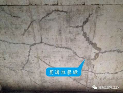 表现形式:现浇楼板中部出现贯通性裂缝。